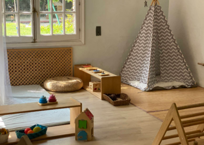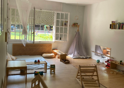 Es un espacio tranquilo, luminoso y amplio, con un gran jardín para poder disfrutar del exterior. Las aulas y los distintos espacios están completamente adecuadadas a la edad.