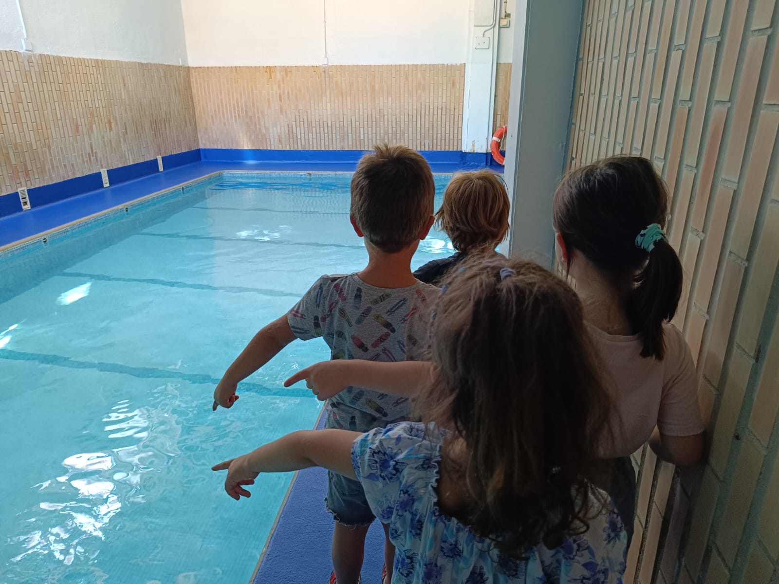 Los alumnos permanecerán desde la salida de clase (16:30) con profesores, tomando la merienda y cambiándolos a la ropa de piscina. Podrán recoger a los niños en los vestuarios al finalizar los turnos de piscina.